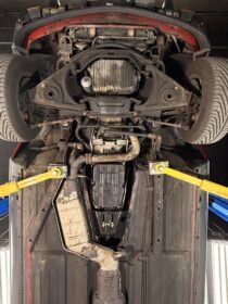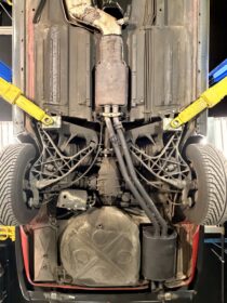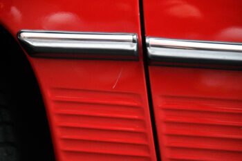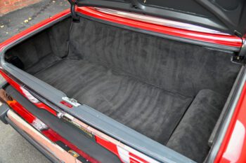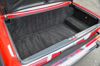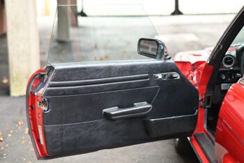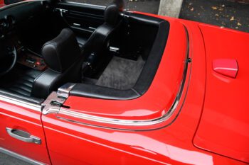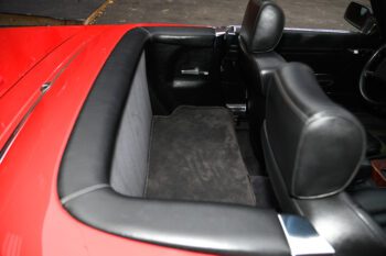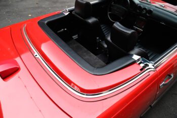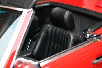Finished in bright red paint that presents very nicely and pairs perfectly with the black interior. The car includes the color-matched hardtop, giving you the best of both worlds: classic coupe look with the hardtop installed and open-top cruising with the convertible top down.